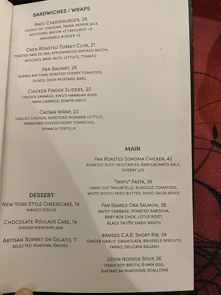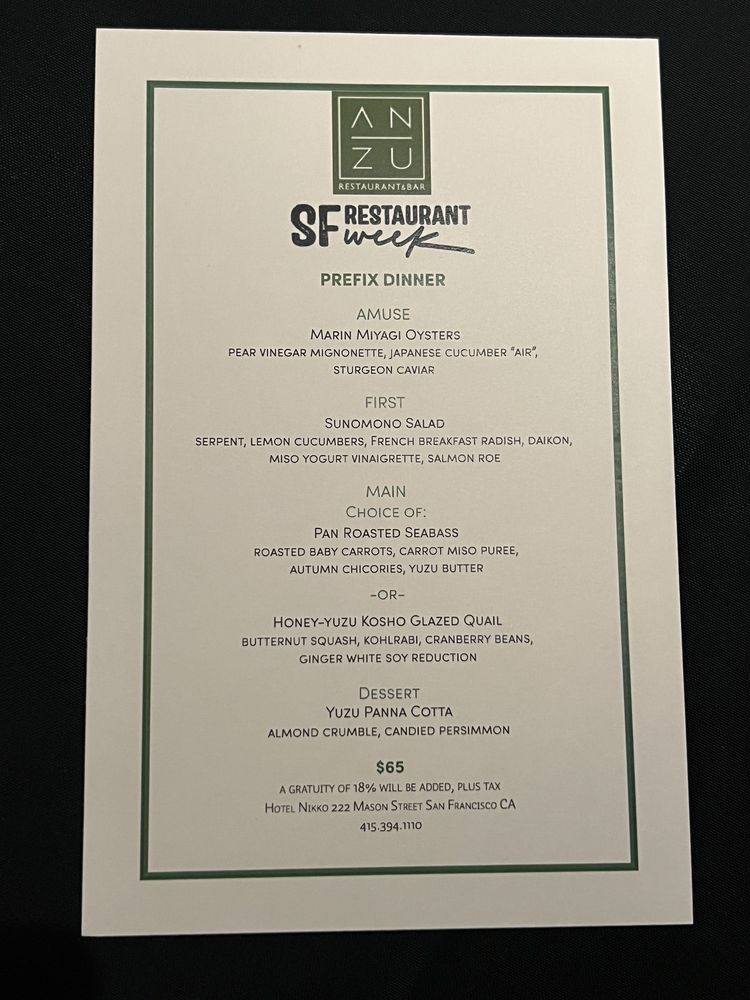 Introducing Restaurant Anzu: Located in San Francisco, Restaurant Anzu offers a classy dining experience with a diverse menu that includes sushi, hot dishes like muscovy duck and udon noodles with tempura shrimp. This restaurant takes reservations, provides takeout and delivery, and has vegan options available. With a full bar, outdoor seating, and happy hour specials, Anzu is perfect for a relaxing dinner or gathering with friends. Not suitable for kids or dancing, Anzu provides a peaceful atmosphere to enjoy delicious food and exceptional service. Customer reviews praise the outstanding service and quality of dishes, including sushi rolls, lobster, noodles, and the must-try bread pudding. Visit Anzu for a memorable dining experience in San Francisco.
